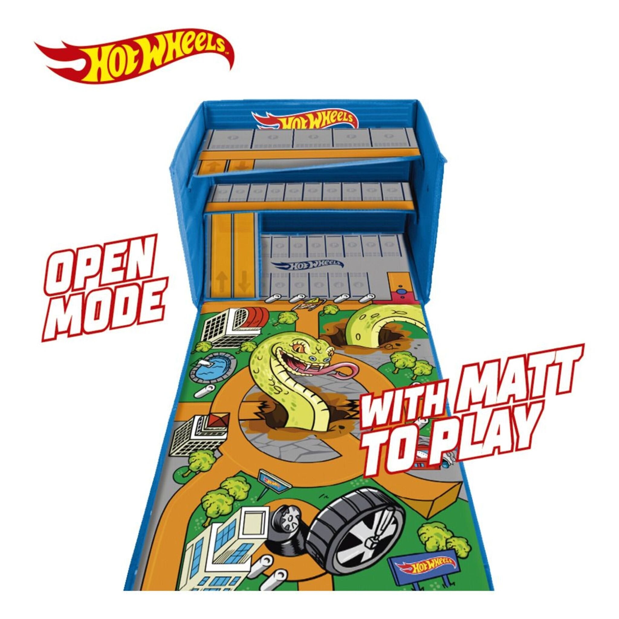 Perfect for imaginative play, kids can race their cars through the intricate roadways, park them in the designated spots, and unleash their creativity with endless Hot Wheels adventures. And when playtime is over, the entire set folds up into a compact box, making it effortlessly portable and perfect for on-the-go fun.
