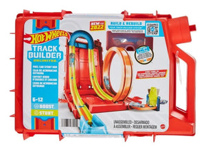 The Hot Wheels Track Builder Unlimited Fuel Can Stunt Box delivers the essentials to power up an epic build and gas up kids' creative engines. The gas-can-shaped container holds fundamental curved and straight track pieces for kids to design a course of boosting and stunting awesomeness.