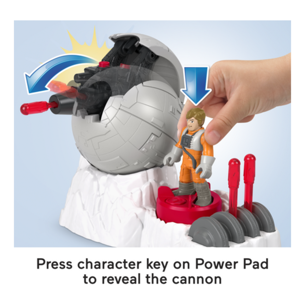 Preschool kids can pretend to join the Rebel Alliance and battle the Galactic Empire with this Imaginext STAR WARS Rebel Base Cannon toy from Fisher-Price. Inspired by the STAR WARS movies, this set includes a projectile launcher, 3 projectiles, and a Luke Skywalker diecast metal character key. Kids can get the play started by pressing the character key on the Power Pad to reveal the hidden toy cannon, then push the button to send projectiles flying. Look for additional Imaginext toys inspired by STAR WARS characters and themes for more preschool-friendly pretend play! (Additional toys sold separately and subject to availability.)