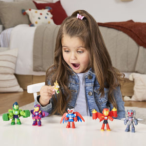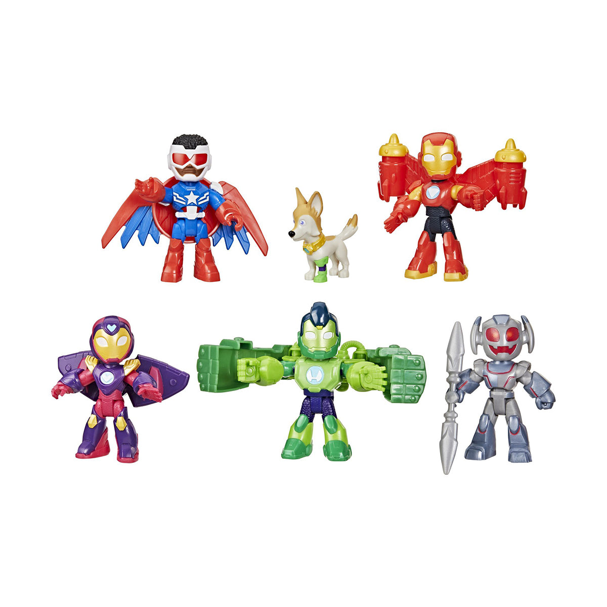 Join Team Iron Man on the latest adventure with this collectible set of 6 Marvel toys. This 3-inch-scale (7.6 cm) 6-figure set of Iron Man toys for boys & girls includes 5 Super Hero figures and 1 villain figure, featuring entertainment-inspired design and deco. Imagine Team Iron Man armoring up and saving the day from the baddie Ultron with the included, character-inspired, detachable action figure accessories!