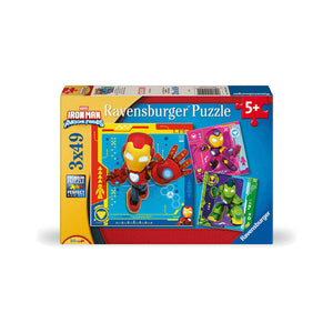 Join Iron Man and his awesome Marvel friends with this exciting 3-in-1 jigsaw puzzle set! Each puzzle has 49 pieces, featuring action-packed scenes of Iron Man and his superhero allies.