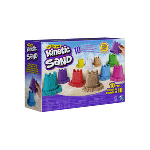 Mix, mould and create anything you can imagine with the Kinetic Sand Castle Containers 10-Pack! This exclusive pack includes 10 vibrant colours of Kinetic Sand – the original magical, mouldable and mesmerising sand. It flows through your hands and never dries out so you can play again and again. With so many colour options, you can squish it, mix it, cut it or mould it – the creative possibilities are endless! Mix two colours together to make a new colour, or create marbled sand. The unique Kinetic Sand formula makes it easy to shape and mould anything you can imagine. Mould colourful castles using the included containers and keep your Kinetic Sand packed inside when you’re finished playing. Create again and again and let Kinetic Sand flow through your hands – it’s so satisfying, you won’t be able to put it down! Kinetic Sand is made from natural sand and is wheat, gluten and casein free. Feel the fun with the Kinetic Sand Castle Containers 10-Pack!