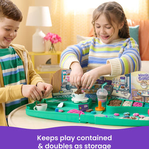 Become a barista with the Kinetic Sand Café Case. This playset will spark imagination and creativity as kids sculpt, shape and mould their own café creations. With 793g Kinetic Sand in 4 vibrant colours (white, brown, teal and shimmer pink), 2 cappuccino cups, a frappe cup, decorative straw cut-outs and more, there’s so many ways to play.