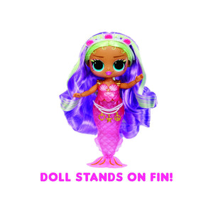 I'm in Be Tween, with underwater style and colourful surprises like you've never seen! Look out world, cuz we mermaids are going to make a splash! Get ready to dive into an enchanting world of magical mermaid fun with the all-new L.O.L. Surprise Tweens Mermaid Cleo Clove fashion doll with dazzling accessories to unbox! Perfect for bath time and imaginative play, Cleo Clove brings a splash of excitement with her beautiful colour-changing tail and mesmerizing fin that can move back and forth!