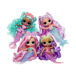 I'm in Be Tween, with underwater style and colorful surprises like you've never seen! Look out world, cuz we mermaids are going to make a splash! Get ready to dive into an enchanting world of magical mermaid fun with the all-new L.O.L. Surprise Tweens Mermaid Lana Marine fashion doll with dazzling accessories to unbox! Perfect for bath time and imaginative play, Lana Marine brings a splash of excitement with her beautiful color-changing tail and mesmerizing fin that can move back and forth!