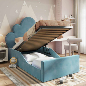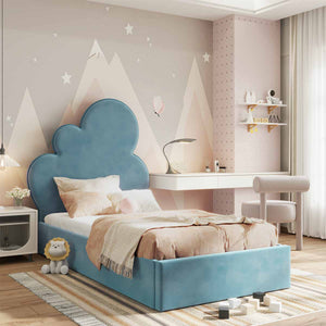 The Little Cloud Kids Bed brings a whimsical touch to your child's room with its adorable, cloud-shaped headboard and soft, dreamy upholstery. This charming bed creates a cozy and imaginative sleep space, perfect for little ones who love to drift off into sweet dreams.
