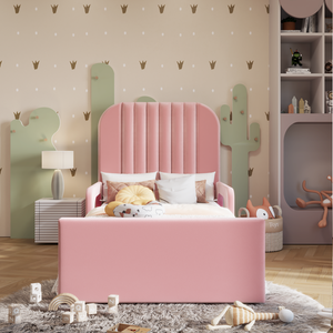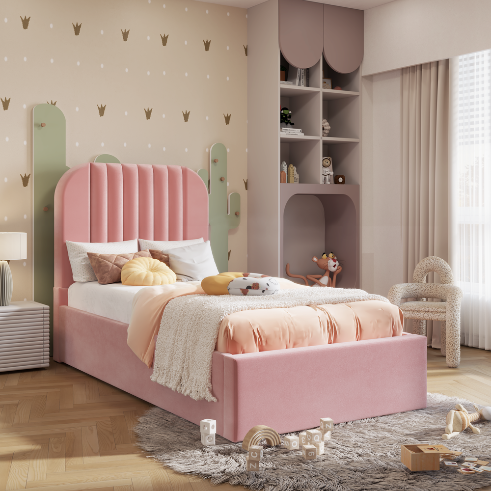Introducing our delightful Little Sander Kids Bed, designed to transform bedtime into an enchanting adventure for your little ones. Crafted with safety, comfort, and imagination in mind, this bed is the perfect centerpiece for any child's bedroom. The BabyFair bed frame is a simple and versatile option for modern settings. With a clean-lined shape and large headboard, it's supported by sprung slats in the base with ottoman options available.