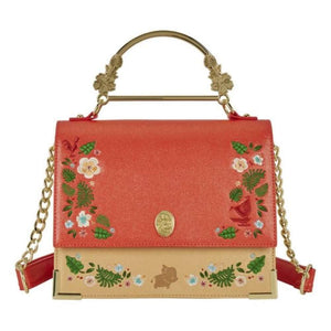Celebrate Disney’s Moana with this elegant crossbody bag! Crafted from shimmery faux leather, the front flap features a molded metal charm of the Heart of Te Fiti, while the top handle showcases floral designs in molded metal. Perfect for everyday adventures or adding a touch of Moana-inspired style to any outfit.