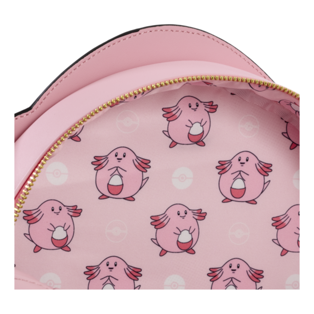 Trainers, you’re going to be eggstactic! Choose this Chansey Loungefly backpack, which features an applique of Chansey’s adorable face with embroidered details. Flip the backpack around, and you’ll find Chansey’s Pokédex number. Off you go! Pack just what you need for the day to get the ball rolling in style. Features:? ? ? Vegan leather (polyurethane)? Adjustable, padded strap Gold-colored metal hardware? Printed, applique, embroidered, and debossed details? Coordinating inside lining? ?? Dimensions:? ? ? 9.5”W x 9.5”H x 4”D? ? This backpack is an officially licensed Nintendo product.