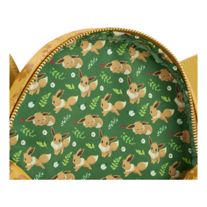 The choice is yours! Continue your dream of becoming a Trainer by calling Eevee to join your next adventure. With plenty of room to hold your gear and convertible shoulder straps to accommodate your personal style, this bag will keep you prepared for any challenge that comes your way. Features: Vegan leather (polyurethane) Adjustable (detachable) shoulder straps Front zipper pocket Shiny gold hardware Molded metal zipper charm Applique, embroidered, debossed, and printed details Coordinating inside lining Dimensions: 8.5”W x 8.5”H x 3.5”D This bag is an officially licensed Pokémon product.