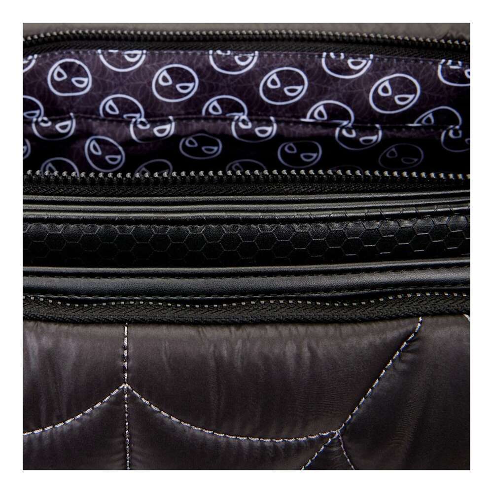 Swinging into epic style! This crossbody bag features quilted material with an applique of the Spider-Man spider logo on the front. Lift the top flap to find artwork of Spider-Man's mask. ""Spider-Man"" is also written across the crossbody strap. This makes for a fun, wearable style that expresses what you love throughout your day!