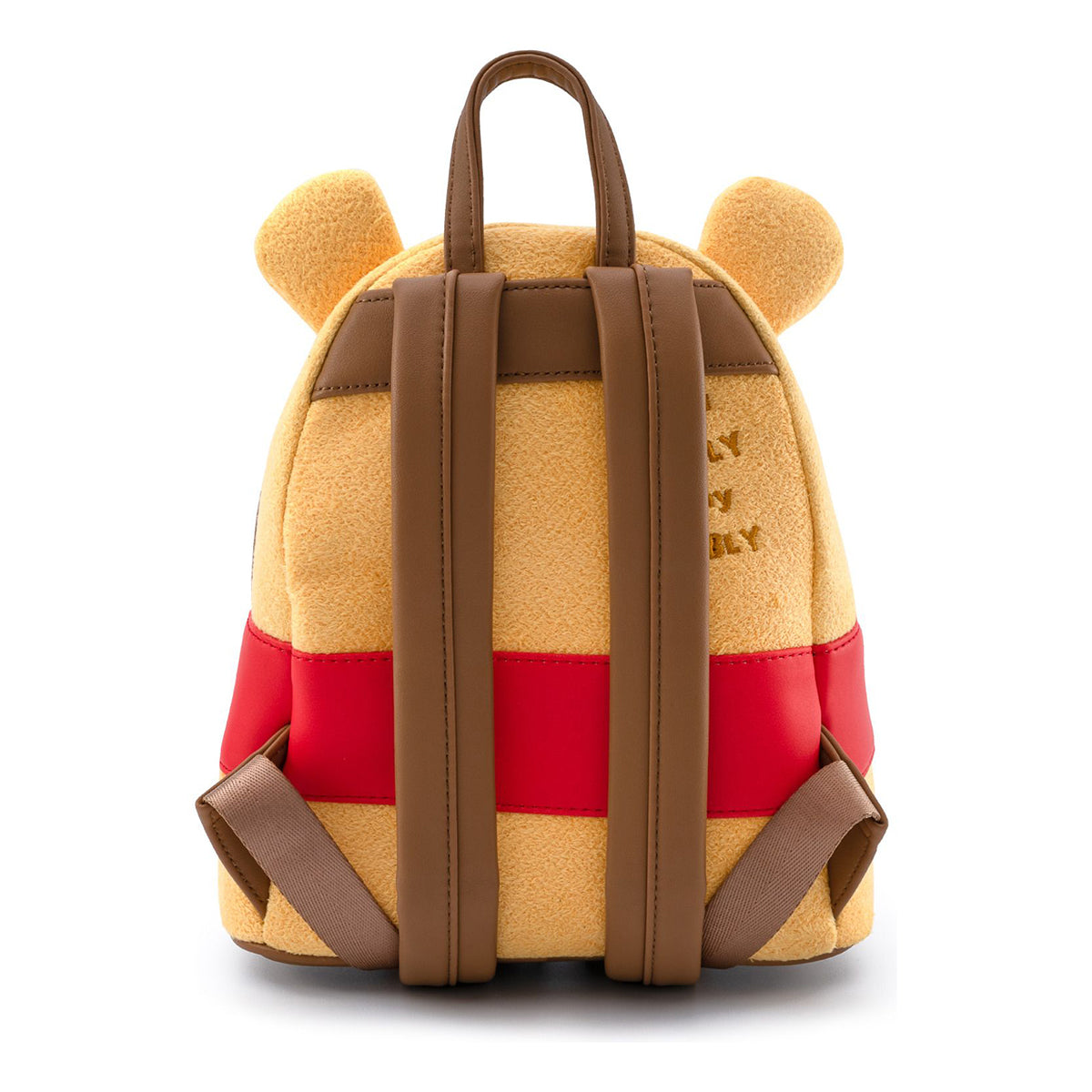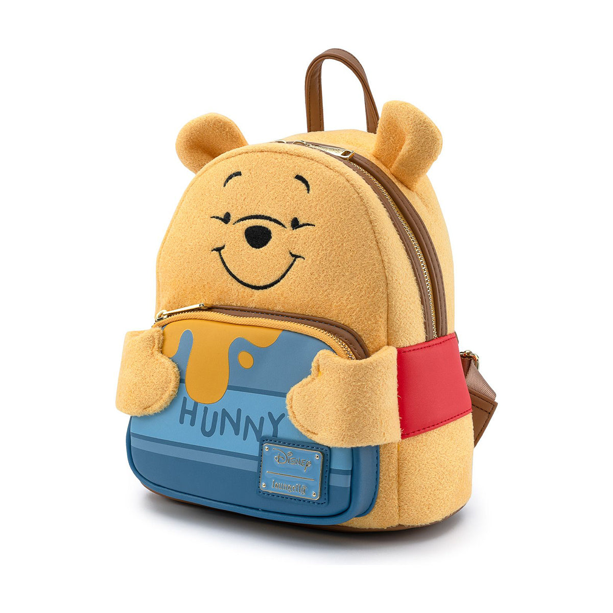 This Winnie the Pooh mini backpack from Loungefly features a playful design inspired by the beloved Disney character. Made with high quality vegan leather, the bag showcases Pooh bear with charming embroidered and printed details, often including a hunny pot theme or character artwork.
