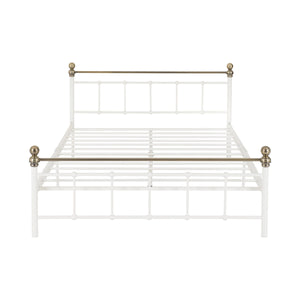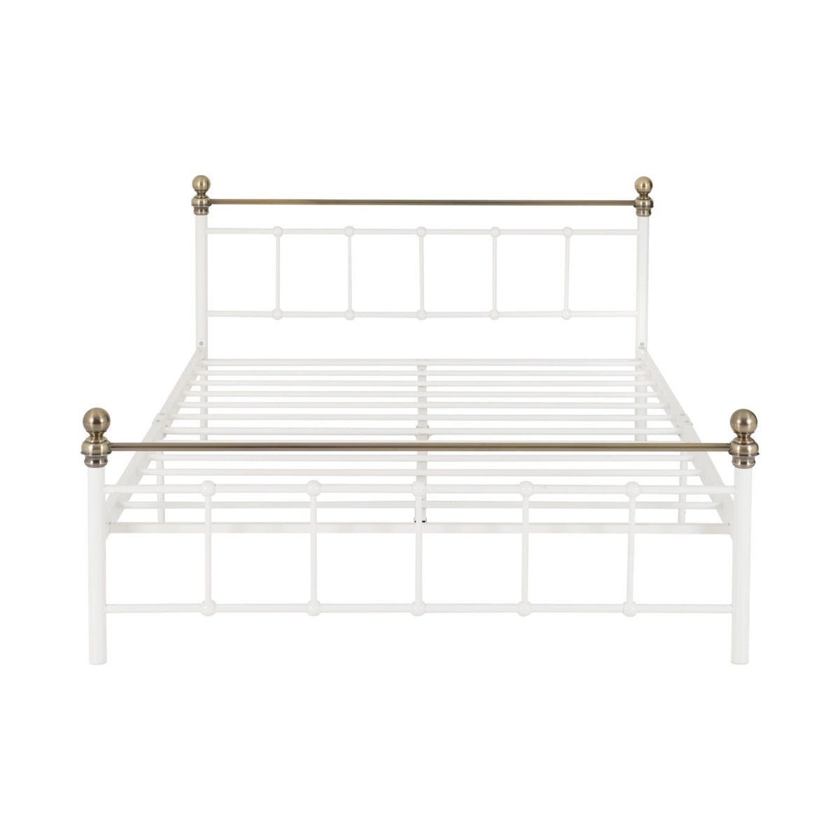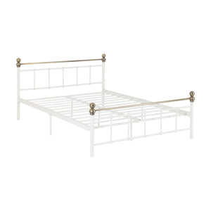 4FT6 Marlborough 4FT6 Bed - White/Antique Brass: