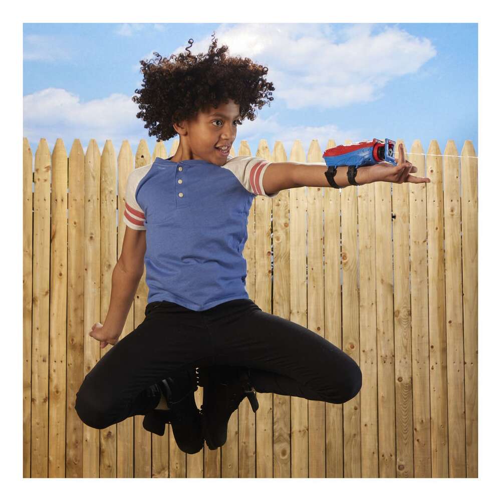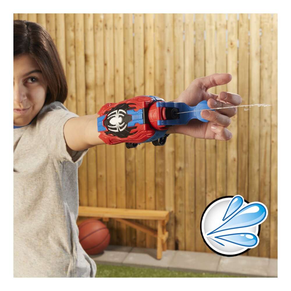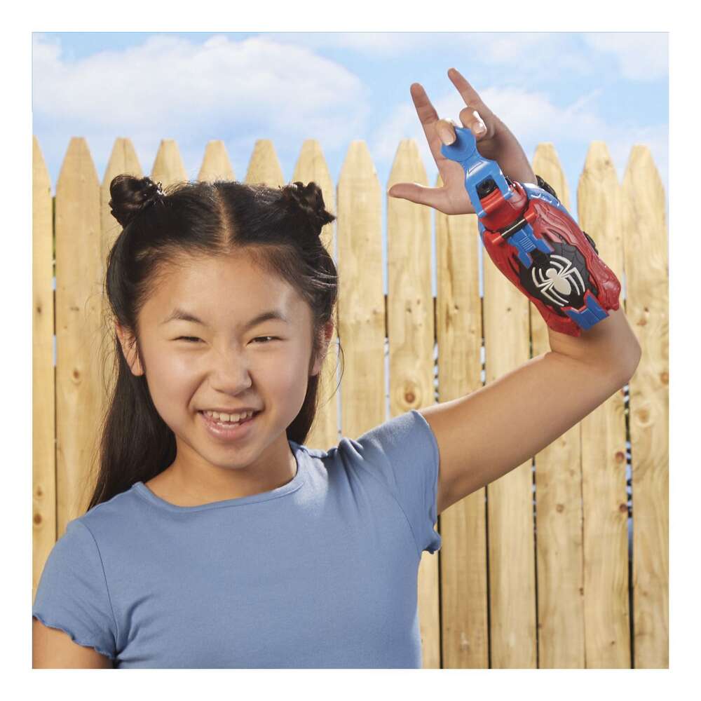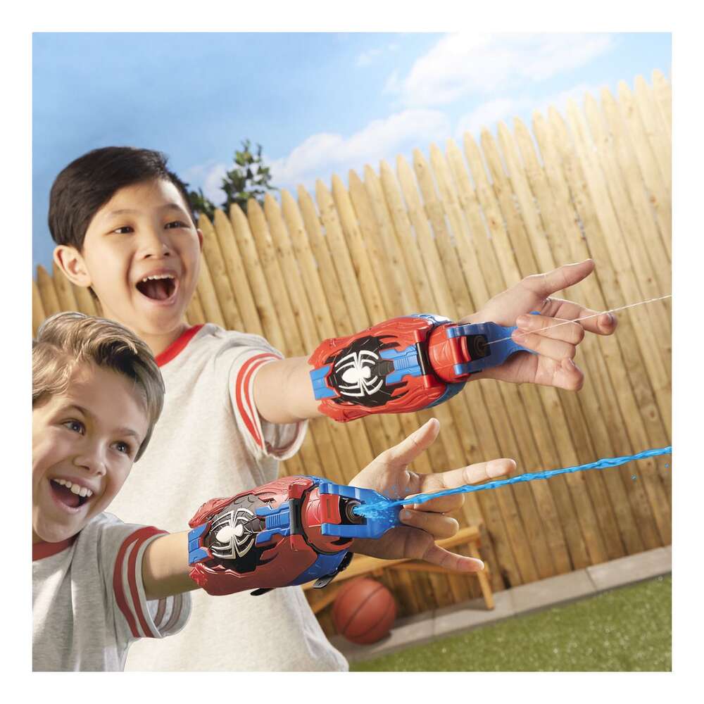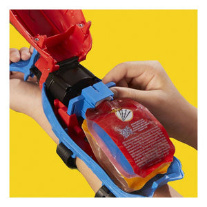 Ready to THWIP and blast realistic webs, just like Spider-Man? The Ultimate Web Blaster features an innovative web fluid that turns into a gel-like webbing you can play with! This blaster features the latest web tech with 3 ways to play. Kids ages 5 and up can strap blaster onto their wrist, show off their best Spider-Man THWIP pose, and push button to blast webs or water! Play with webs to imagine capturing Spider-Man's latest foe; drape around action figures or playsets (sold separately) to create your own webtastic world of Spider-Man! Blaster includes 1 Real Webs pouch (refills available, sold separately), and 1 refillable water pouch. The Ultimate Web blaster is a great Spider-Man gift for boys and girls, and can be a fun, action-packed addition to Spider-Man costumes, or paired with a Spider-Man mask! WARNING: Small parts. CAUTION: Do not aim at eyes or face. Product will stain. Adult supervision recommended. Not intended to be eaten. Not recommended for indoor use. Non-toxic. © 2024 MARVEL. © 2024 Hasbro. All rights reserved.