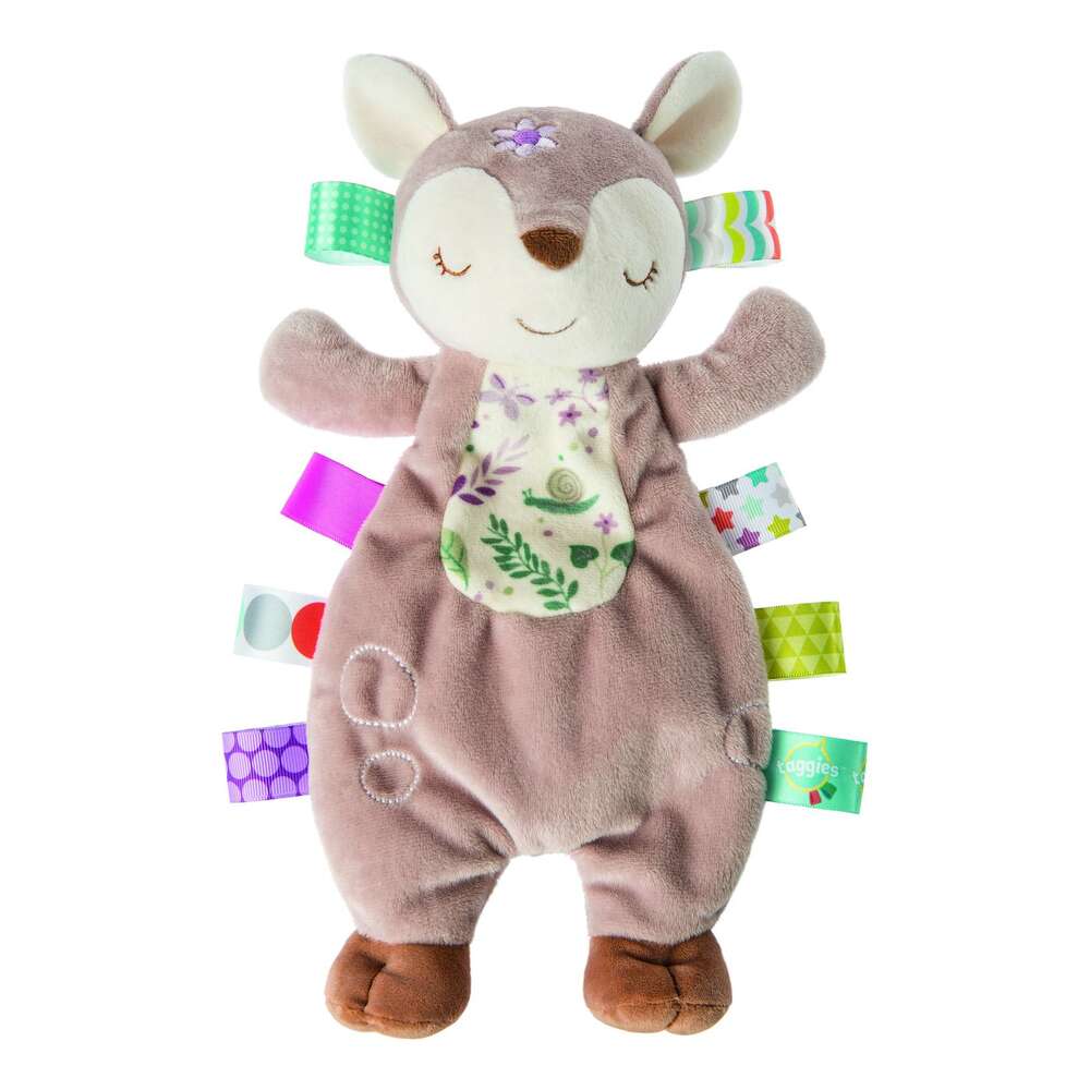 Flora Fawn Lovey's relaxed, understuffed body makes for floppy fun for little hands to and arms to hold onto. This 11-inch lovey will make a comforting buddy for snuggle time. Taggies was born when a mom noticed her child's fascination with satin tags, and blossomed into a world of treasured products. Exploring Taggies textured tags can provide tactile stimulation that babies crave for development and have an amazing calming effect on little ones. Taggies Signature Collection is recognized as the premium line of wonderfully soft and soothing Taggies toys made by Mary Meyer. Mary Meyer is an environmentally conscious company and has been making toys that are safe and fun since 1933. Mary Meyer has received numerous awards including multiple Toy of the Year awards. Known for using unique, beautiful, and incredibly soft fabrics, Mary Meyer continually strives to design extraordinary products of outstanding quality, all the while keeping an eye on customer service and value. Inventive, driven, and compassionate, Mary built a company that continues to bring joy to children and families all over the world. To this day, Mary's grandchildren and great-grandchildren continue that same tradition of building care and comfort into everything they create. Whether it's picking out the perfect gift for a loved one, receiving a toy friend that will become a best buddy, or cuddling up with and enjoying the luxurious, premium fabrics of our soft toys€”when it comes to Mary Meyer, it's love you can feel.