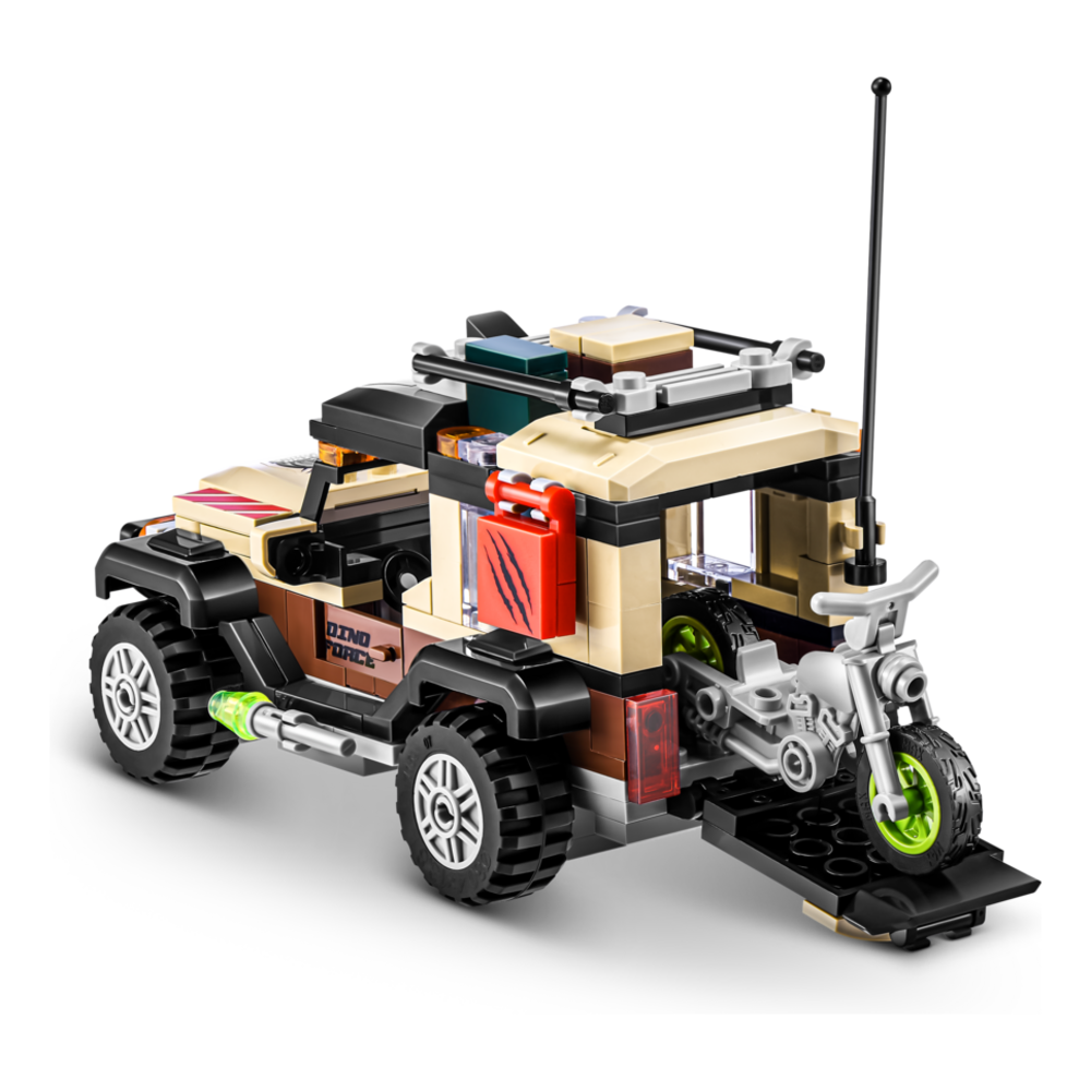 Build a Dino Adventure with MAX! Build the ultimate prehistoric world by constructing the helicopter, truck, motorcycle, 2 dinosaurs, tree, and radars! Place the figurine in the truck or helicopter to chase down your epic dinosaurs. Release the motorcycle from the back of the helicopter or truck for the ultimate speed chase. Move the dinosaur's arms to fight back! Build more for less with MAX. Compatible with major brick brands.