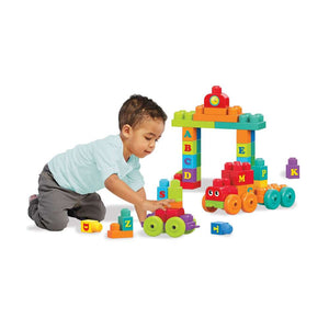 All aboard for alphabet adventures Your little one will be on the fast track to learning their ABCs with a friendly, buildable train featuring building blocks decorated with the letters A through Z Connect the three rolling wheelbases together to make your train, then stack the letter blocks on top to build the alphabet or even make whole words, learning your letters as you chug along. Or use the blocks and special shapes to build a station as the next stop on your alphabet adventure Ideal for ages 1 to 5