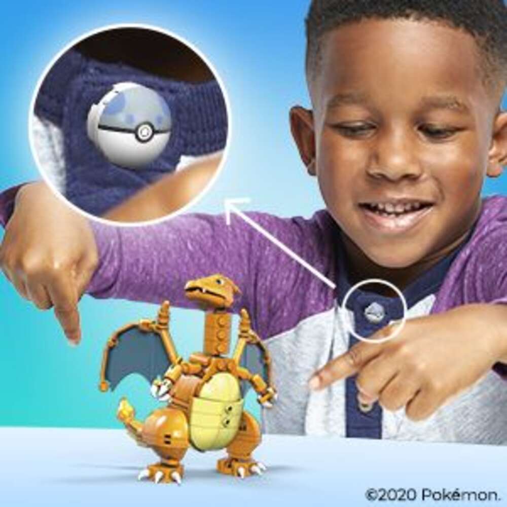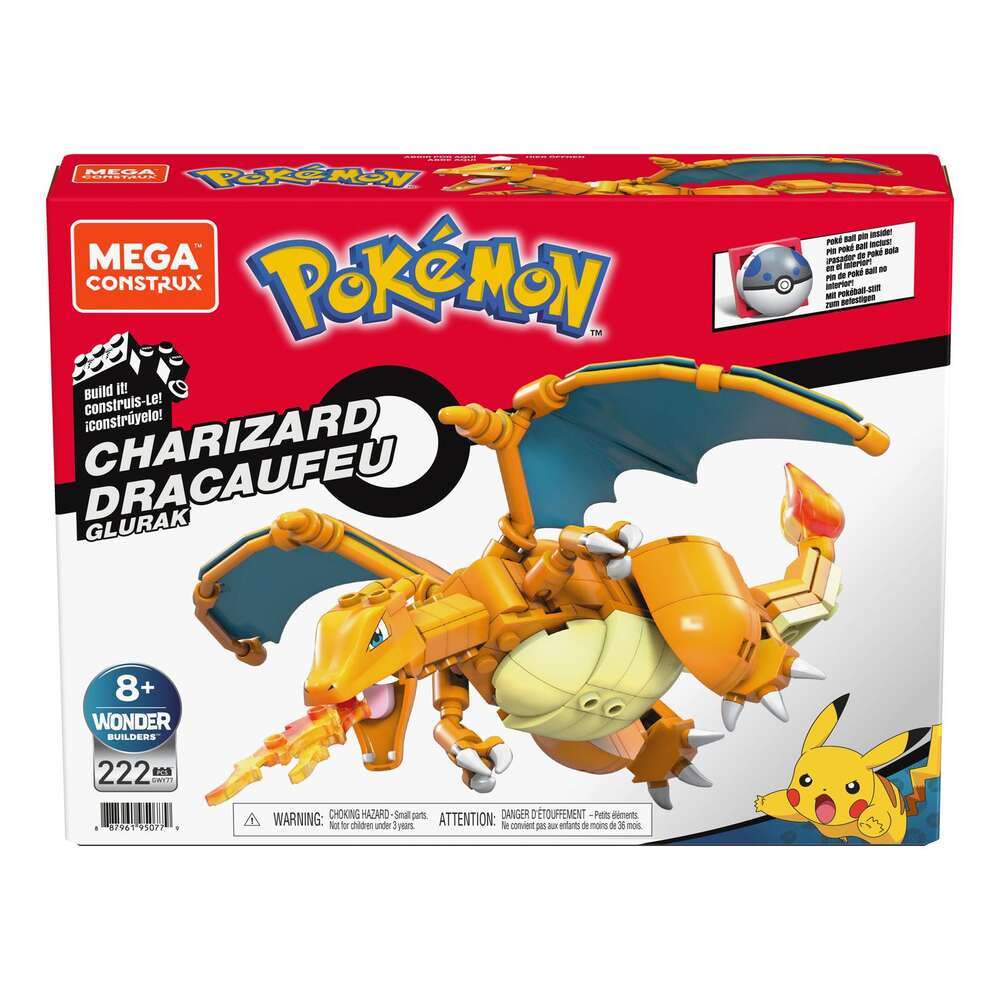 Features Medium-scale, buildable and poseable Charizard building set that stands over 4 inches tall Charizard has poseable limbs, wings and fire coming from his mouth and tail Bricks combine with all Mega Construx building sets and are compatible with other name brands Comes with Heavy Ball pin Ideal for ages 6 and up, this construction toy provides build-and-play experiences to help develop creativity and problem-solving skills Prepare for a fiery battle with a buildable Charizard. Featuring 210 bricks and special pieces, this construction set features the beloved Pokémon's iconic wings, flaming tail and breath. This impressive Charizard is super-poseable so you can recreate classic battle stances. Ideal for Wonder Builders, ages 6 and up What's in the box: 210 pieces Collectible Heavy Ball pin