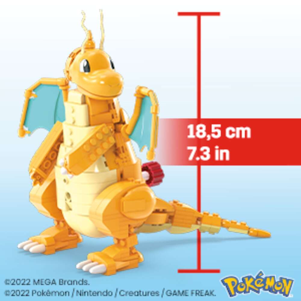 Watch Dragonite take flight with this building set featuring the innovative Motion Brick. Follow step-by-step instructions to build the Pokémon, then turn the crank to make the poseable Dragonite’s wings flap. Combine with the Countryside Windmill to create an expanded Pokémon world with motion. Each sold separately.