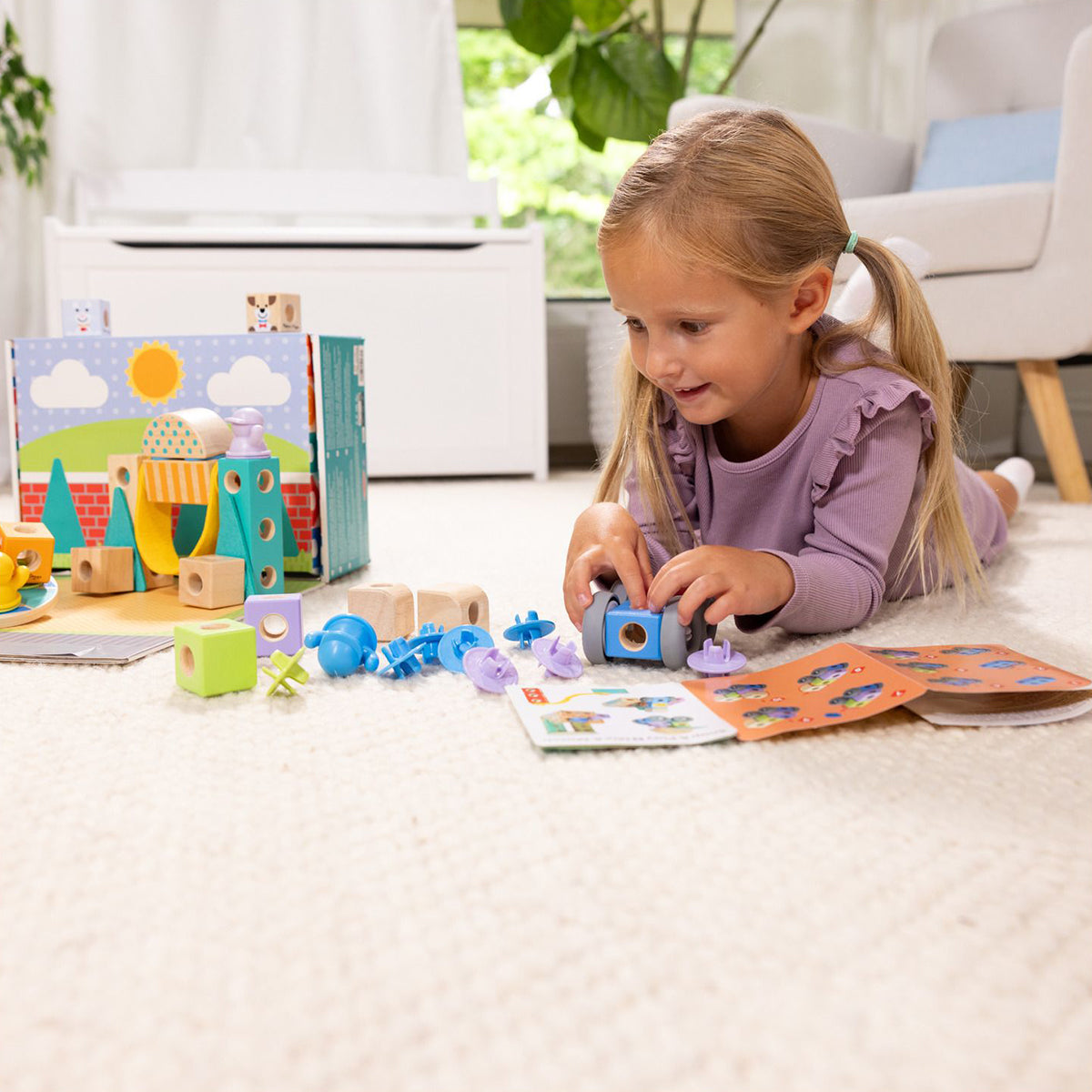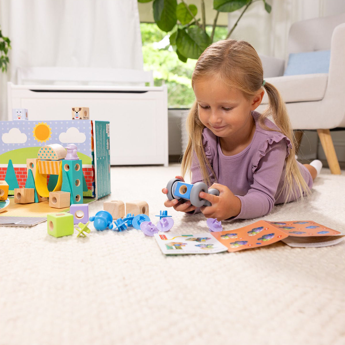 Melissa & Doug Blockables™ are connectable, stackable, and playable! The solid wood connect-and-play building blocks are perfect manipulatives to help preschoolers two and older boost developmental skills (fine motor, problem-solving, matching, storytelling, and self-esteem), while using their imaginations and having fun.