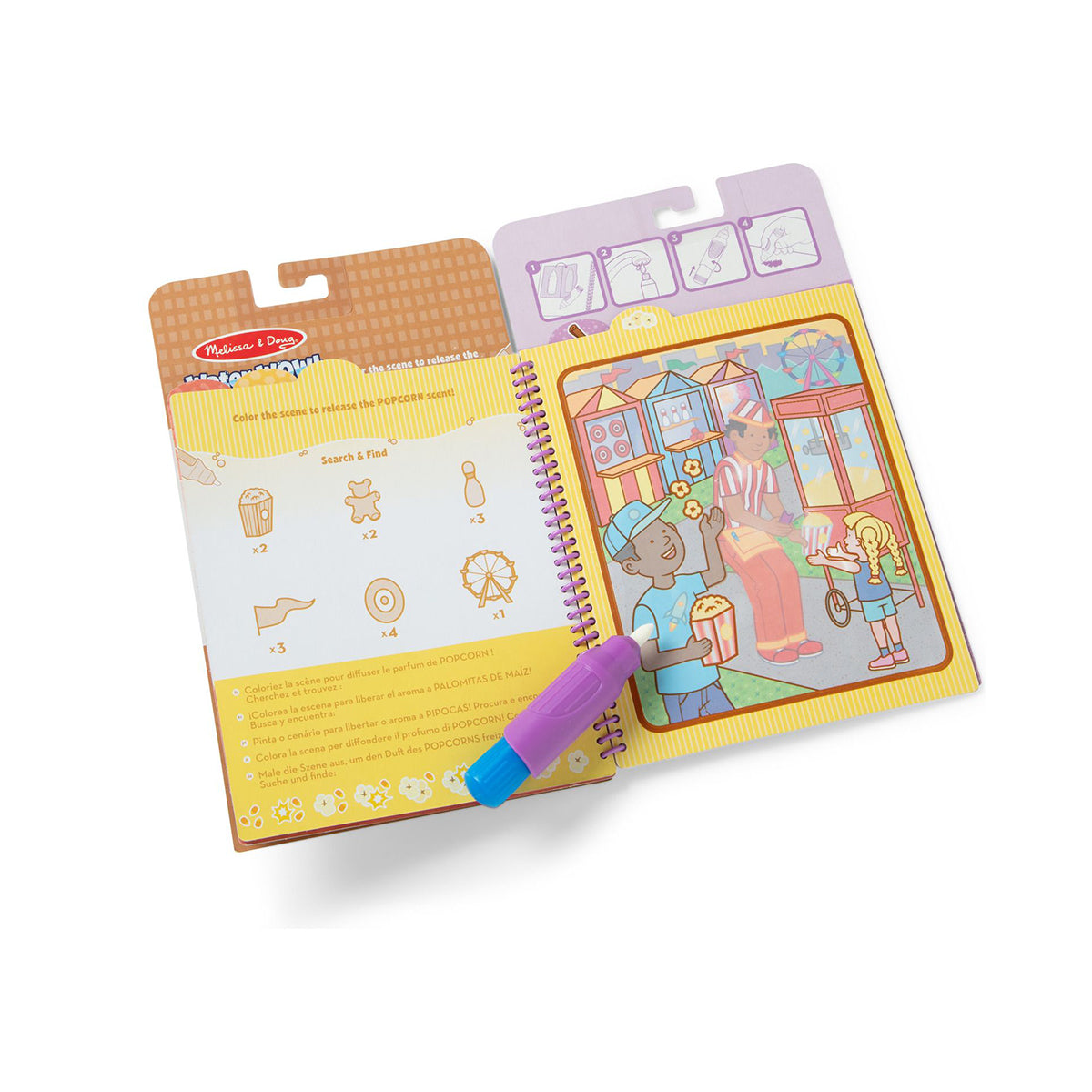 This treat-themed spiral-bound book includes five scent-filled scenes to color (cinnamon, chocolate, apple, honey, and popcorn) and search-and-find activities for each scene. The chunky-sized water pen is easy to hold and stores neatly right in the front cover, making this scented Water WOW! an ideal activity book and travel toy for kids!