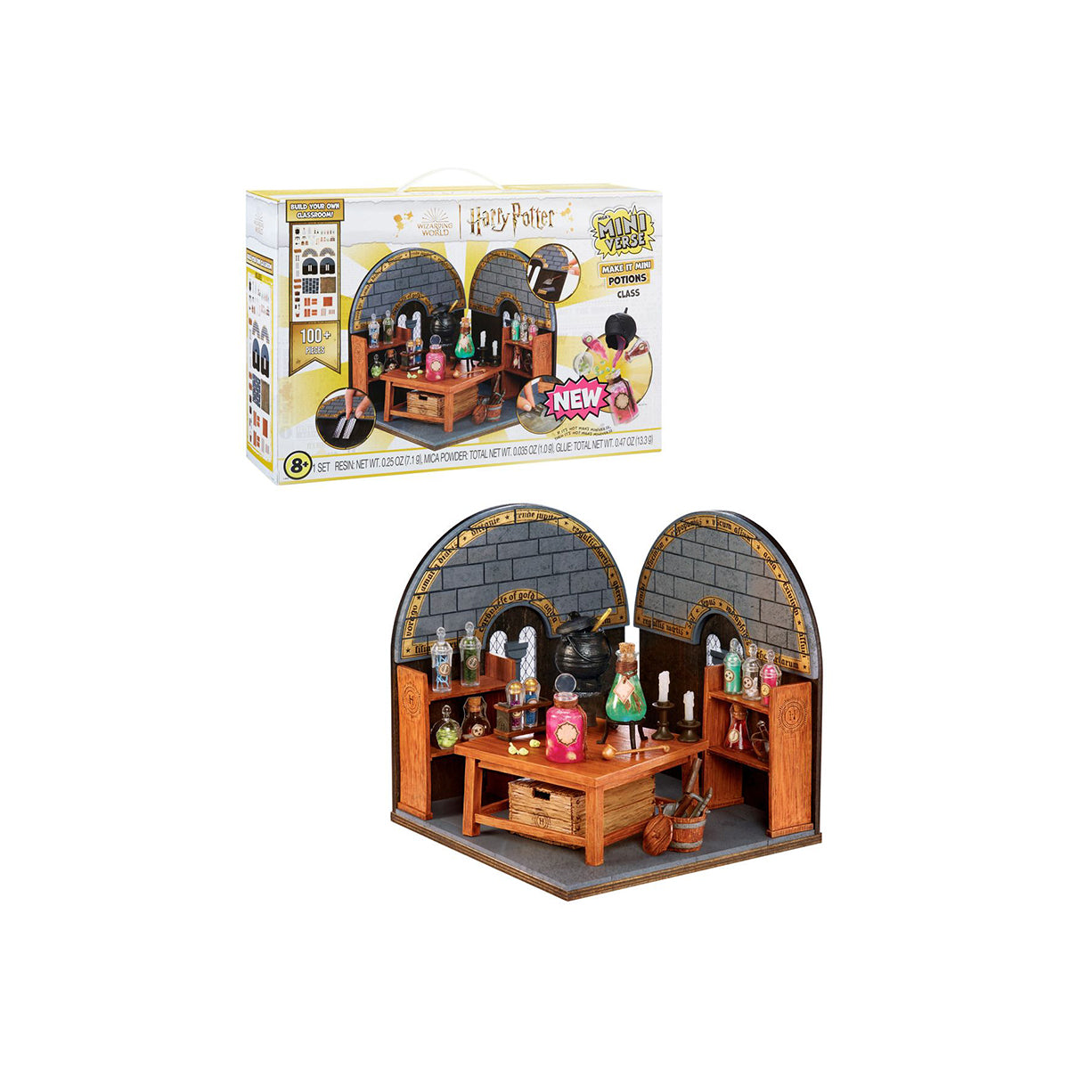 Step into the magical world of Harry Potter with MGA's Miniverse DIY Make It Mini Potions Class! This enchanting set lets you build, create, and display your own miniature Potions Class, inspired by the iconic scenes from the Harry Potter film series. Each pack includes over 100 pieces to craft every detail, from the walls and floors to the furniture, allowing you to bring your Potions Class to life.