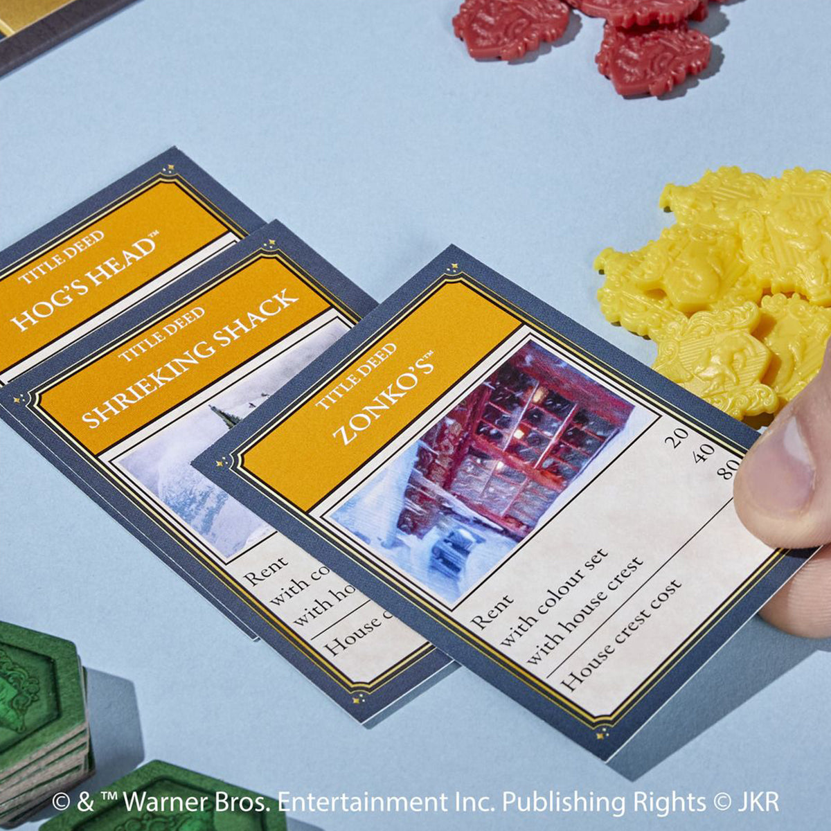 WIZARDING WORLD and all related trademarks, characters, names and indicia are © & ™ Warner Bros. Entertainment Inc. Publishing Rights © JKR. The Hasbro and Monopoly names and logos, the distinctive design of the gameboard, the four corner squares, the Mr. Monopoly name and character, as well as each of the distinctive elements of the board and playing pieces are trademarks of Hasbro, Inc. for its property trading game and game equipment.