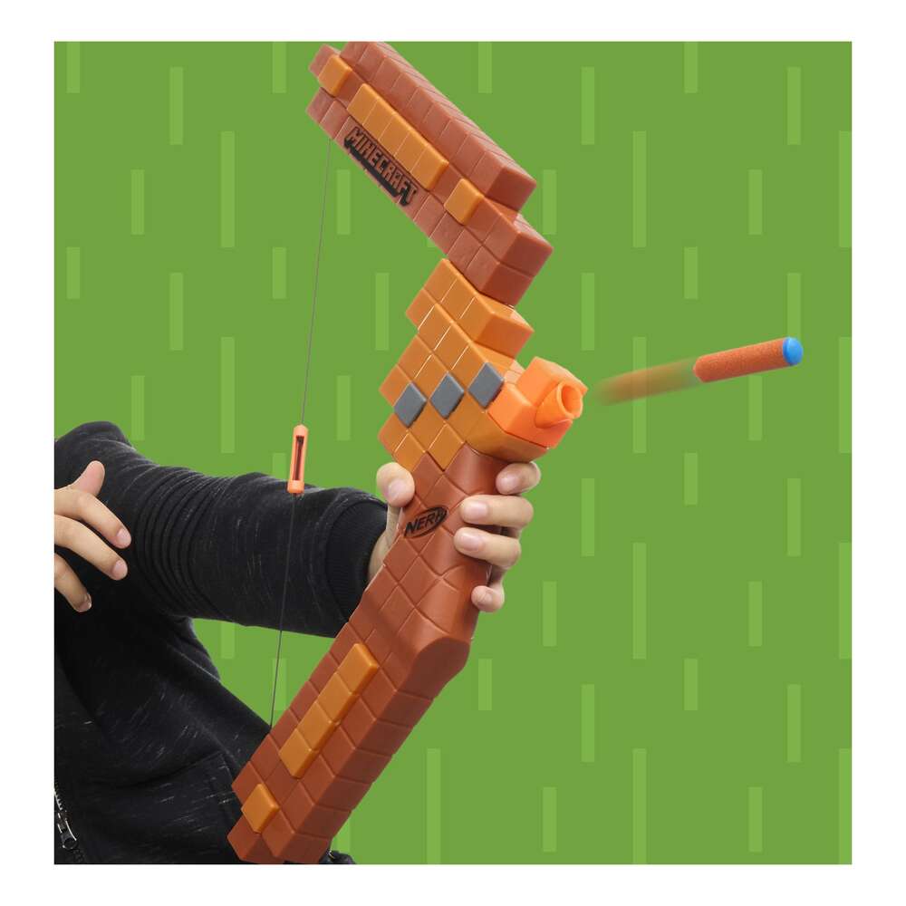 Nerf and Minecraft combine to create distinctive blasters for your Nerf battles! The Nerf Minecraft Bow takes its inspiration from the bow in the popular game. Experience the long-range bow-firing action of the game in real life as you draw the string back and release it to let the dart fly! The Nerf Minecraft Bow includes 8 Official Nerf N1 darts that are designed for extreme accuracy, speed, and distance. The single-dart capacity bow, with true-to-game features, is an eye-catching addition to Minecraft collections and an incredible blaster to add to Nerf cache. The Minecraft-inspired bow is great for backyard adventures as kids imagine themselves diving into the world of Minecraft. Eyewear recommended (not included). Copyright 2025 Mojang AB. TM Microsoft Corporation. NERF and HASBRO and all related trademarks and logos are trademarks of Hasbro, Inc. Includes: bow and 8 darts. Ages 8 and up TO AVOID EYE INJURY: WARNING: Do not aim at eyes or face. Use of eyewear recommended for players and people within range. Use only official Nerf darts. Other darts may not meet safety standards. Do not modify darts or blaster. WARNING: CHOKING HAZARD - Small parts may be generated. Not for children under 3 years. © 2025 Mojang AB. All Rights Reserved. Minecraft, the Minecraft logo and the Mojang Studios logo and the Creeper logo are trademarks of the Microsoft group of companies. © 2025 Hasbro. All Rights Reserved.
