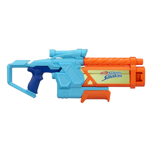 The Nerf Super Soaker Mega Dunk-Fill water blaster features an easy instant fill tank so you’re ready for water-drenching fun in no time! The innovative tank design fills super fast -- just dunk and go! There’s nothing for you to do, just submerge the tank in water and watch as it instantly refills. The translucent tank has a capacity of up to 33.9 fluid ounces (1005 ml). Dunk the tank into water and you’re ready for outdoor water games in an instant. Pump the handle back and forth to unleash a soaking blast. The blaster features a scope for targeting. Nerf Super Soaker blasters are great kids outdoor water toys and make awesome gifts to get everyone outside for fun, active play that’s a real splash!