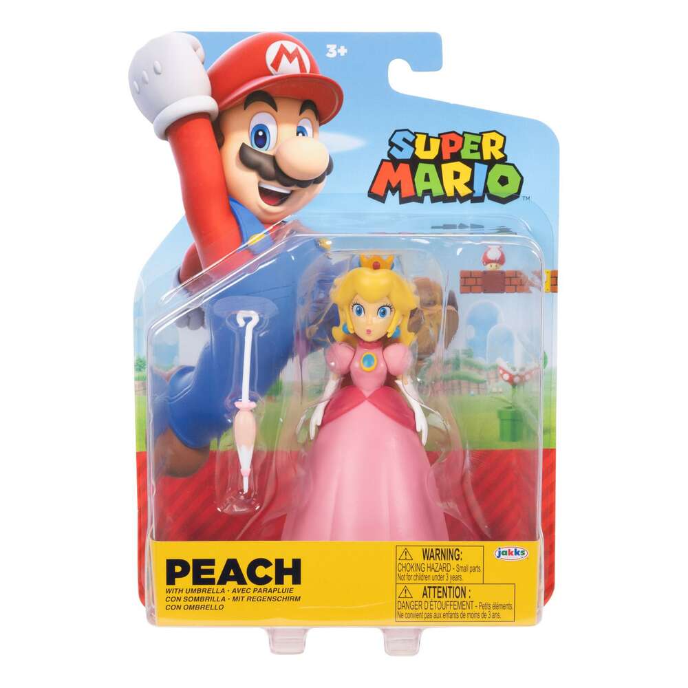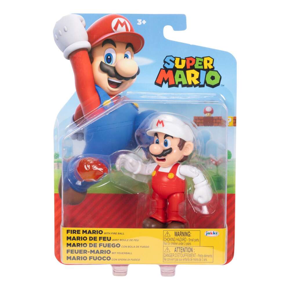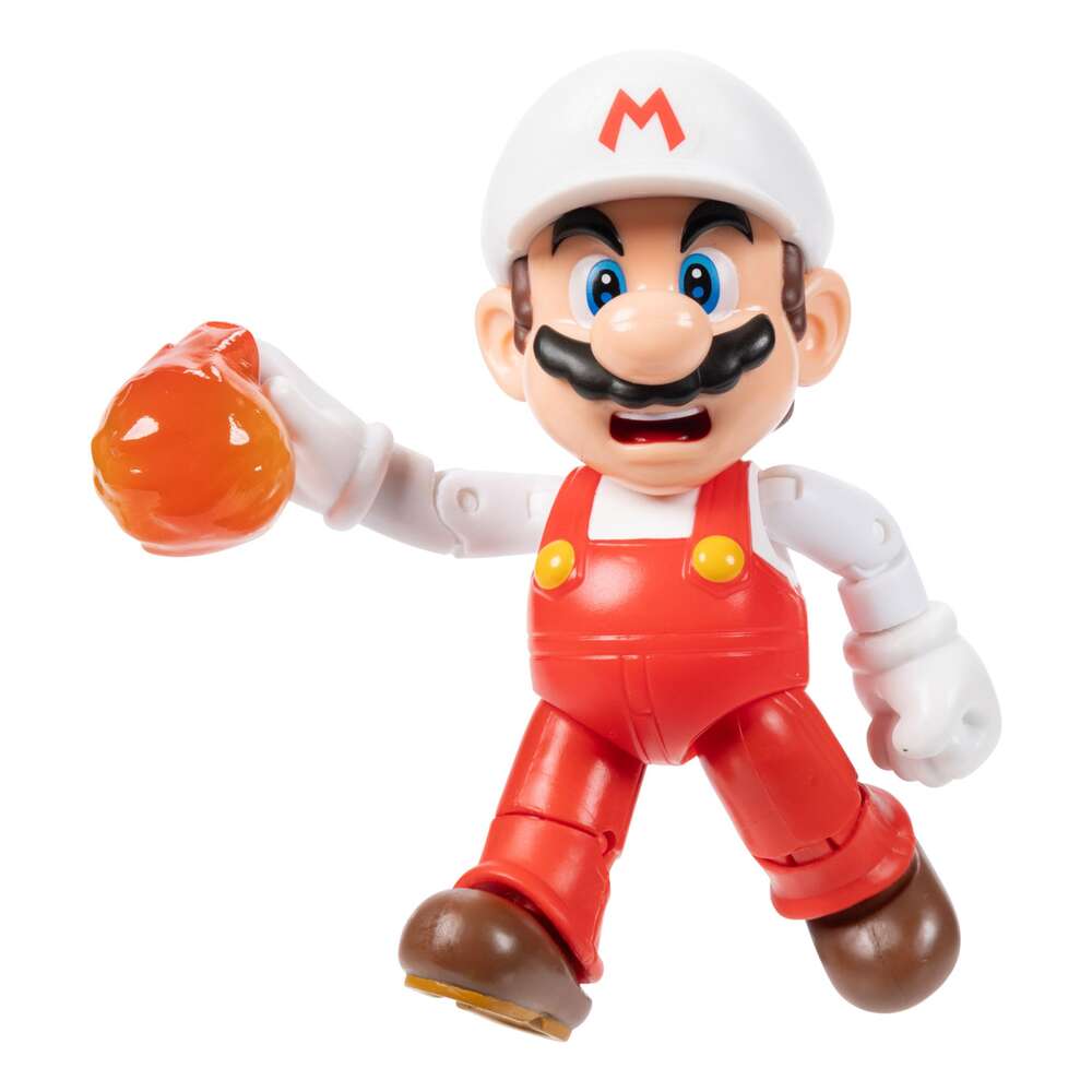 Nintendo launched its first console, the Nintendo Entertainment System™, in North America in 1985 and with it, introduced the popular Super Mario Bros.™ franchise. Mario™ has since gone on to star in many gaming adventures, becoming the pop-culture icon he is today. Along with his friends Luigi, Peach, Yoshi, and Toad, this classic video game hero has an enduring appeal for fans of all ages! 42675i Larry Koopa with Wand Larry is one of seven Koopalings, a group of Bowser’s trusted lackeys. He’s got a quick temper and uses a wand to shoot out magic blasts…mostly at mustachioed plumbers. Larry Koopa has 10 points of articulation and includes his wand! Ages 3 and up. 42449i Fire Mario with Fireball Accessory When Fire Mario is armed with the Fire Flower power-up, he gains the ability to hurl fireballs at any foes that get in his way! Take that, Bowser’s minions! Fire Mario has 13 points of articulation and includes a fireball accessory! Ages 3 and up. 42676i Princess Peach with Umbrella Beloved by subjects of the Mushroom Kingdom, Princess Peach is responsible for the day-to-day well-being of the kingdom. The Princess Peach 4-inch figure has 7 points of articulation and includes her umbrella! Ages 3 and up. 42452i Fire Luigi with Fireball Accessory When Luigi is armed with the Fire Flower power-up, he gains the ability to hurl fireballs at any foes that get in his way! Take that, Bowser’s minions! Fire Luigi has 13 points of articulation and includes his fireball accessory. Ages 3 and up. 42677i Boo with Coin These shy spirits inhabit Mario’s world and have been known to vanish or freeze when me face-to-face. They usually appear in groups and fly in formation. Boo has 2 points of articulation and includes a coin accessory! Ages 3 and up.