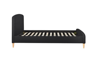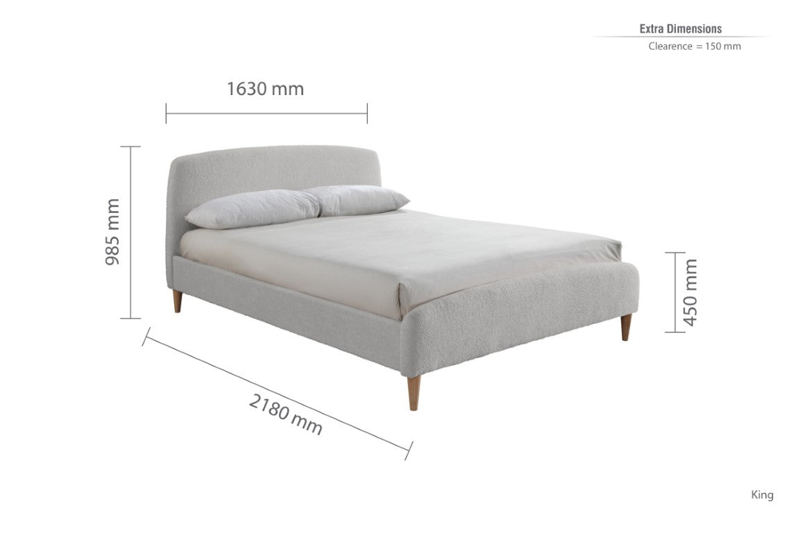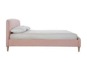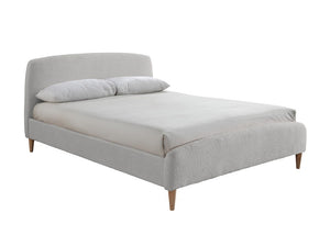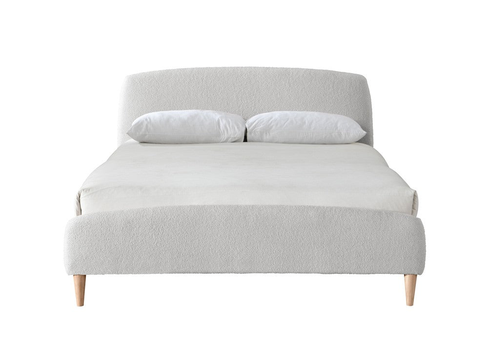 Gentle curves to the headboard and foot end, along with stunning teddy bear fabric compliments the light wood feet.