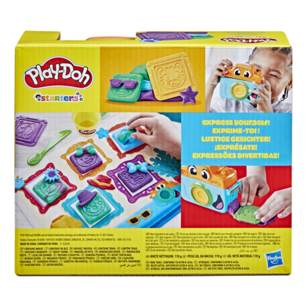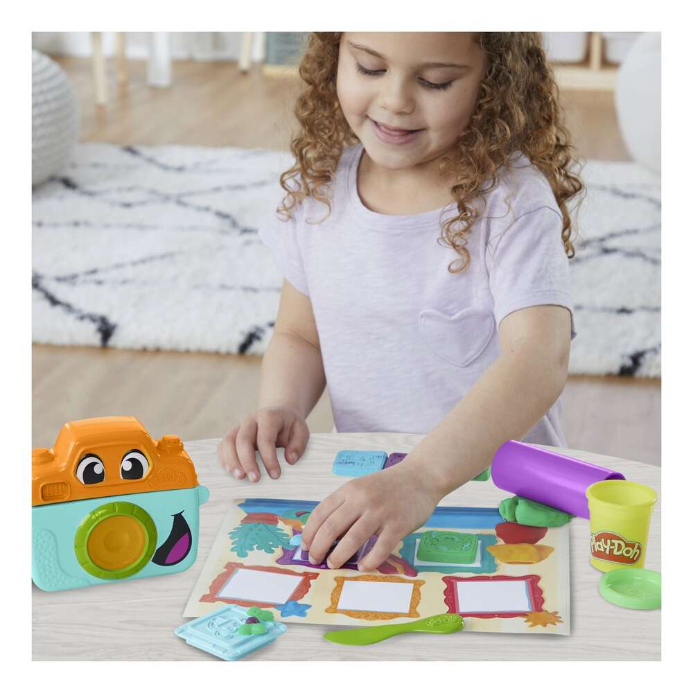 Capture a wild world of faces and feelings with the Photo Fun Play-Doh starter set! The pretend camera squeezes flat Play-Doh strips to look like film and then kids can use the 5 animal face stampers to create pretend portraits. Customize the animal faces with silly molds like mustaches, hats, glasses, and more. Imaginative play activities for kids get even more colorful with 3 Play-Doh cans and 2 ounces of each color. Preschool toys like this Play-Doh starter kit help encourage kids to explore social-emotional and fine motor skills. Whether they're beginners or Play-Doh pros, it's a great kids gift or addition to your sensory toys for 2 year old girls and boys and up. PLAY-DOH and HASBRO and all related trademarks and logos are trademarks of Hasbro, Inc.