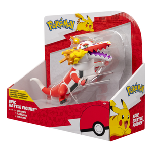 Choose Skeledirge, the Singer Pokémon. Featuring nine points of articulation across its long serpentine body, this 12-inch Epic Battle Figure was made for play and display. The package also includes a clear Display Stand to pose this battle ready Skeledirge as it crawls around. Designed with authentic details, Skeledirge looks like it scampered right out of the Pokémon Animated Series. Add Skeledirge to your Epic Battle Figure team and get ready to train. Officially licensed Pokémon product from Jazwares. Ages 4+ Includes: (1) 12-Inch Skeledirge Epic Battle Figure, (1) Display Stand Accessory