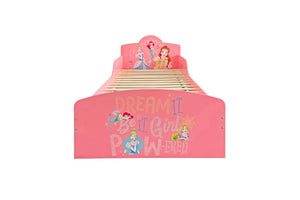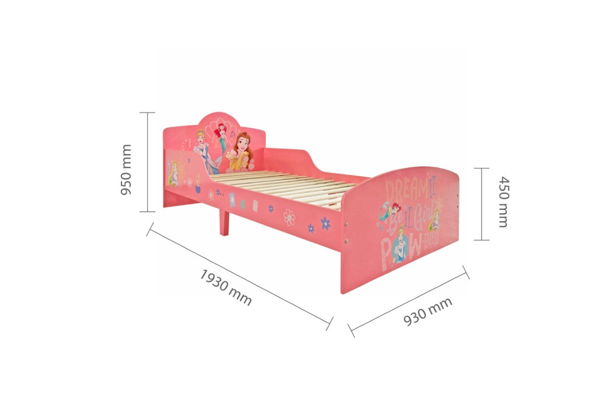 The Princess has arrived. This is a must have bed for all Disney Princess fans. Featuring a detailed princess headboard and footboard including Cinderella, Belle, Ariel and Moana this bed frame turns every night into a fairy tale with your favourite Disney Princesses.