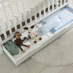 - Stylish Storage Solution: The built-in drawer provides a discreet storage solution for bedding, toys, and other essentials, helping maintain a clutter-free nursery.