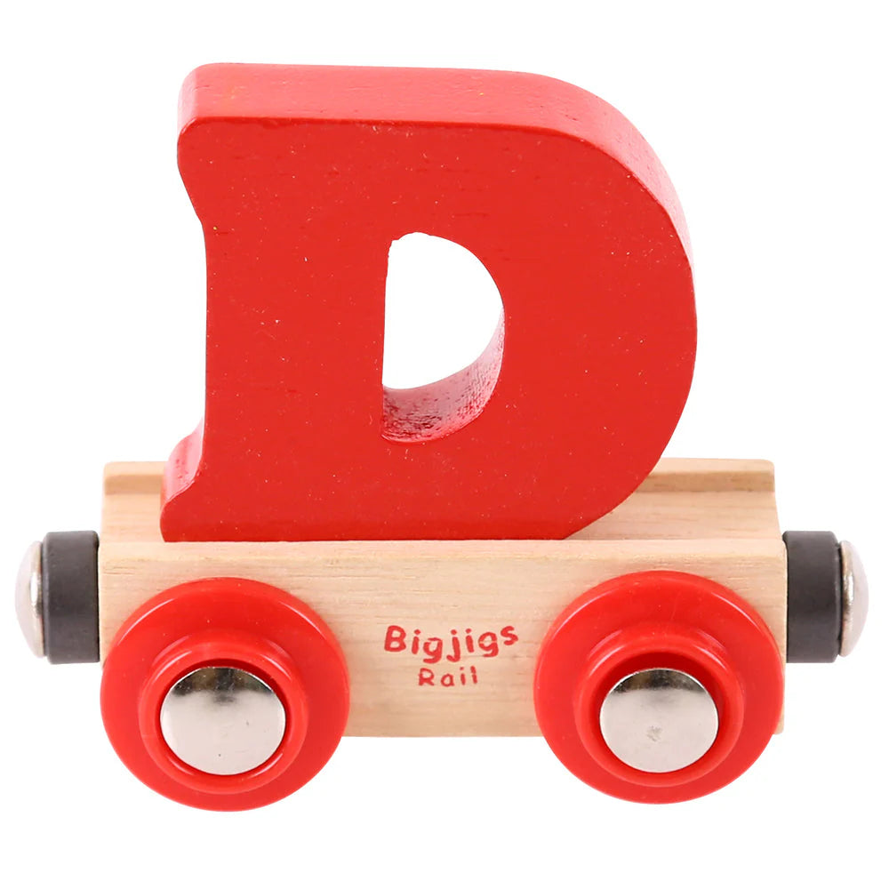 Bigjigs Rail Name carriages are loaded with a brightly coloured wooden letter or number. Each letter or number is removable and can be interchanged with other wagons and carriages in your wooden train set.