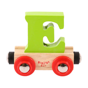 Bigjigs Rail Name carriages are loaded with a brightly coloured wooden letter or number. Each letter or number is removable and can be interchanged with other wagons and carriages in your wooden train set.