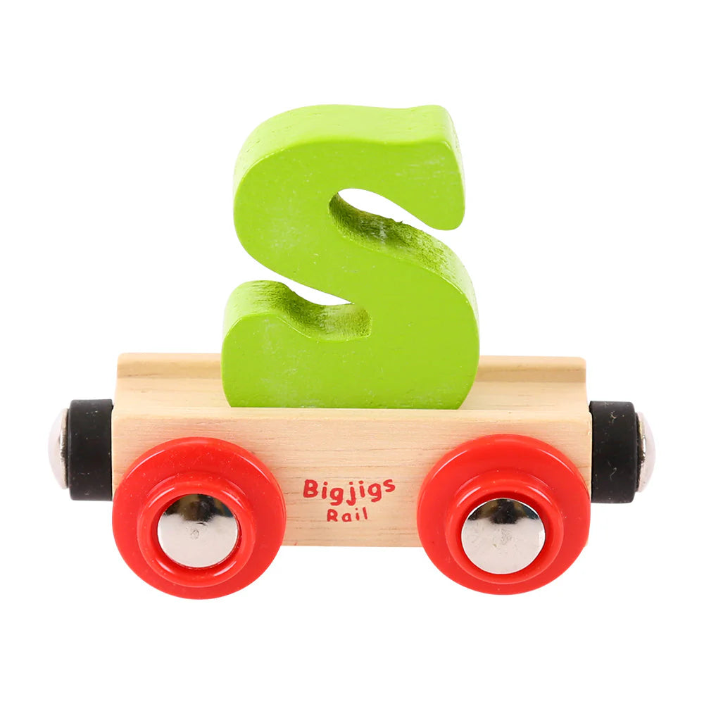 Bigjigs Rail Name carriages are loaded with a brightly coloured wooden letter or number. Each letter or number is removable and can be interchanged with other wagons and carriages in your wooden train set.