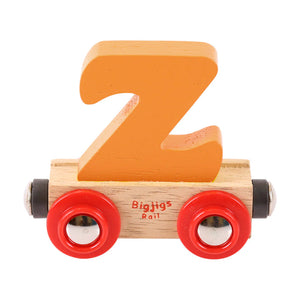 Bigjigs Rail Name carriages are loaded with a brightly coloured wooden letter or number. Each letter or number is removable and can be interchanged with other wagons and carriages in your wooden train set. The Bigjigs Rail Name range is ideal to personalise a Bigjigs Rail network, or as a special newborn, christening or birthday gift.