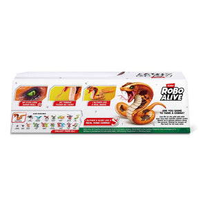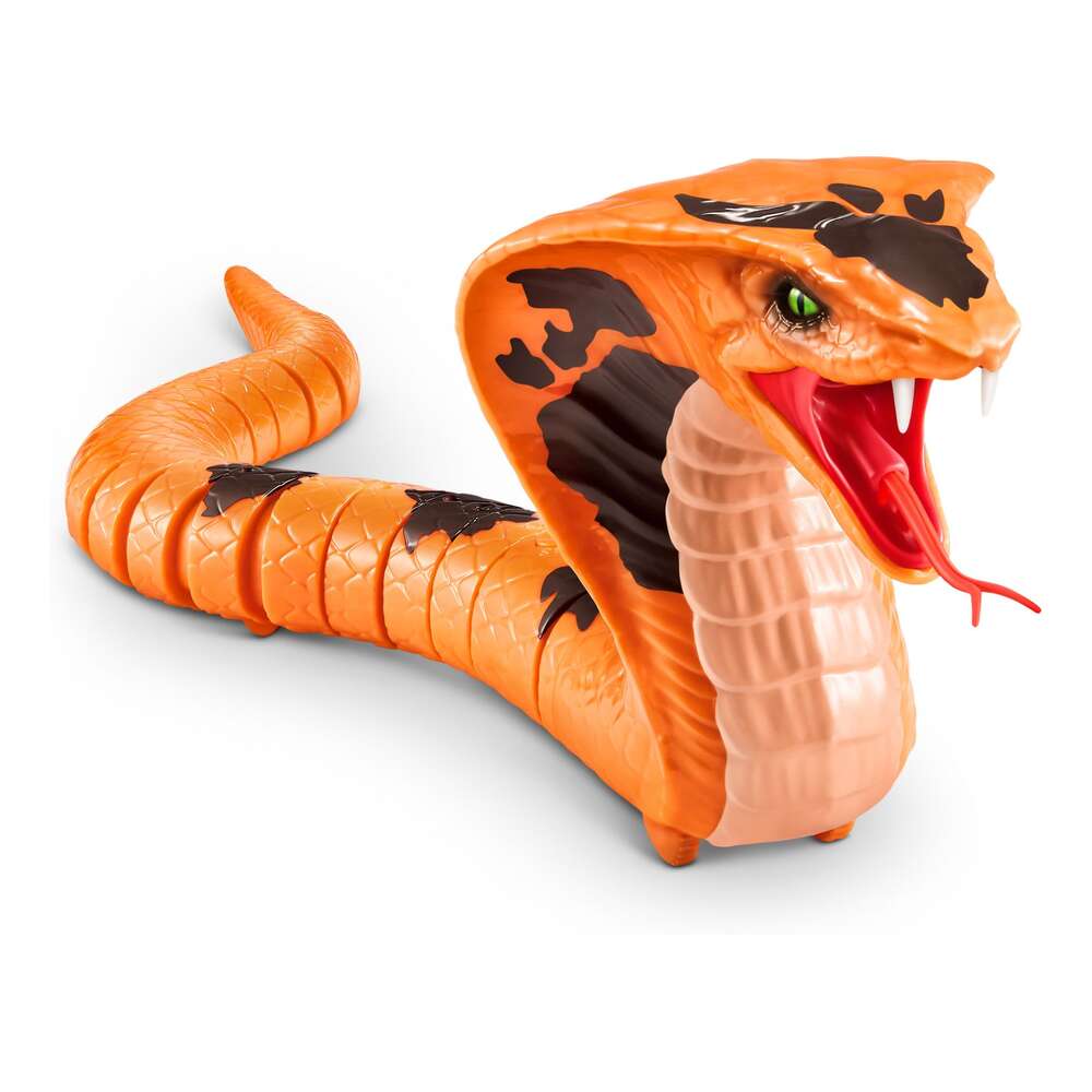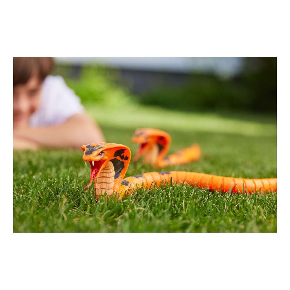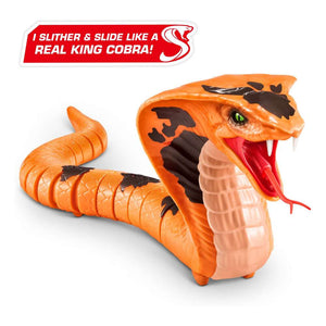 Unleash the thrill with the Robo Alive King Cobra! Measuring a terrifying 17.52 inches (44.5 cm) from tongue to tail. Featuring smart movement technology, it has realistic tongue-flicking movements and slithers across the floor, hunting its prey—watch out, it could be you! Perfect for epic pranks, hide it under the dining table or sneak it into a friend's backpack for blood-curdling screams. With ultra-realistic snakeskin, this King Cobra looks as frightening as the real thing. Dare to pick it up and collect the entire Reptile Collection for an unforgettable adventure!