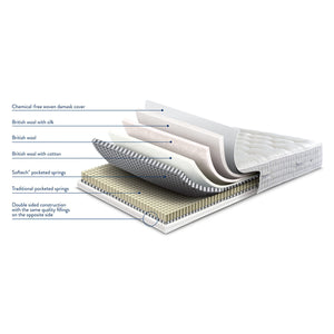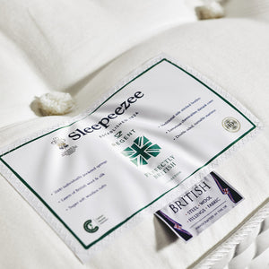 The SleepEezee Perfectly British Regent Mattress combines 2600 Softech® pocketed springs with natural British wool and silk for responsive support, elegant comfort, and year-round temperature balance.