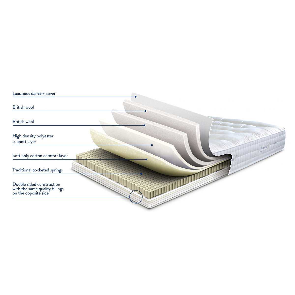 The SleepEezee Wool Luxe 1200 Mattress is handcrafted with 100% British wool and silk to deliver breathable, temperature-regulating comfort and supportive, natural luxury all night long.