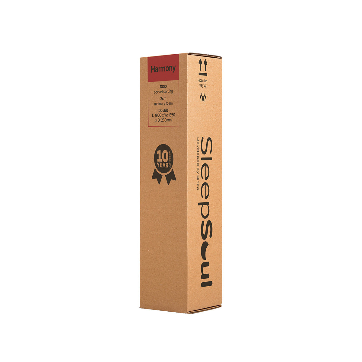 The Harmony mattress is vacuum sealed and packed into a box for freshness and convenience. Just release from the box, remove the inner plastic wrap and, like magic, watch as your new mattress begins to take shape. In 2 hours, it will be good; in 48hours, it will be great.