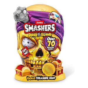 X marks the spot. Can you find the hidden treasure among the Smashers Dino Island Gold Treasure Hunt? Where 70+ surprises await to challenge your courage! Navigate through a battle of dinosaurs and sharks, where land meets sea in the fight to defend ancient treasures of gold and gems. Dig for hidden treasures all while discovering special collectibles on the way. like the one-of-a-kind golden dino, to elevate your Smashers collection to epic proportions!