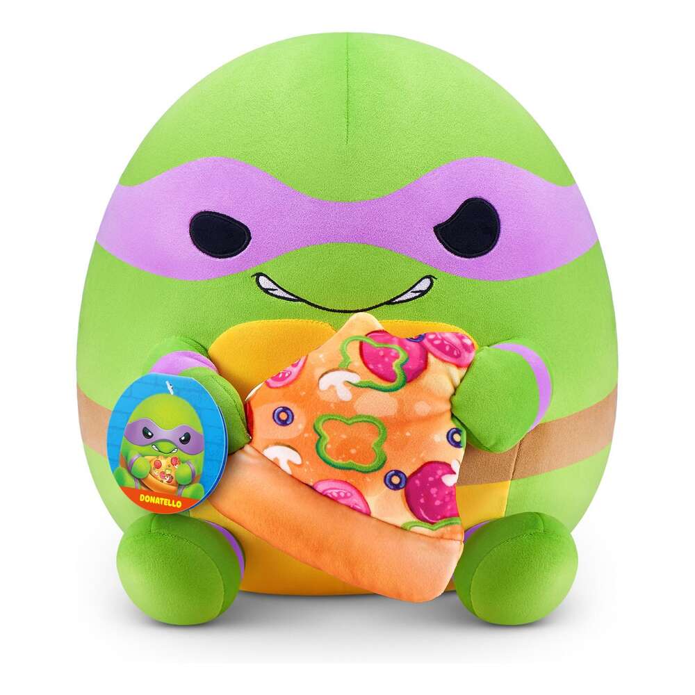 We're lean, we're green, and we're mean! Introducing ZURU Snackles—your favorite Teenage Mutant Ninja Turtles team in super soft plush form! Meet Leonardo, Donatello, Michelangelo, and Raphael, each clutching their beloved pizza snack, ready for action. Standing 14-inches tall, these Snackles are the perfect blend of softness and squishiness. But hurry, these limited edition Snackles won't stick around for long! Dive into their bios on the hangtag to uncover their unique Turtle power and join the adventure to collect them all. Cowabunga!