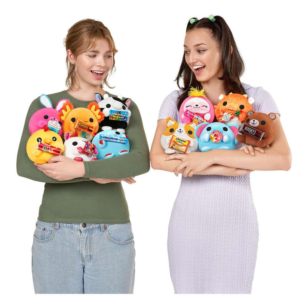 Snackles is the super soft ultra squeezable plush that comes paired with your favorite mini brands! Each Snackle comes with an origin story comic and stickers. Don’t go hungry, there's 11 Small Sized Snackles to collect! Will you find the Tabasco Dragon or the Hersheys Bear? Hunt for your favorite tasty pairing with Snackles!