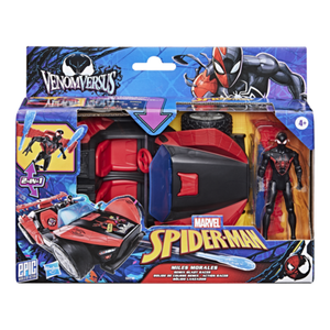 Imagine speeding into web-blasting action and adventure with the Marvel Spider-Man VenomVersus Miles Morales Remix Racer! The 4-inch-scale (10 cm) Miles Morales and vehicle toys are part of Hasbro’s exclusive Epic World of Action Series. Action figure features classic red-and-black suit design, as well as poseable limbs. Vehicle seats 2 Epic World of Series figures and comes with 3 web projectile accessories. The Remix Racer can't be missed and will be the perfect gift for kids or a great addition to any Marvel Super Hero toy collection. It even comes with an awesome sticker sheet kids can use to decorate their racer! Look for more Marvel toys to collect or gives as gifts for birthday and holidays, including figures, toy vehicles, playsets, & roleplay gear! (Each sold separately. Subject to availability.) Copyright MARVEL. All trademarks and registered trademarks are the property of their respective owners. HASBRO and all related trademarks and logos are trademarks of Hasbro, Inc.