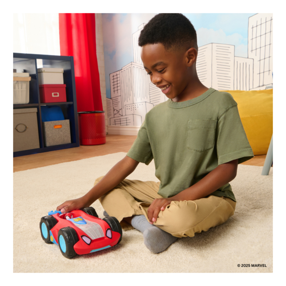 Race into action with the Spidey and His Amazing Friends Deluxe Feature Vehicle! Perfect for superhero-sized adventures, this vehicle is packed with fun features to help Spidey and the team save the day. Kids can place their Spidey figure inside, roll into action, and activate exciting functions for even more playtime fun. With bright colours, a sleek design, and interactive features, it’s the ultimate ride for little heroes who love Marvel’s youngest web-slinging team.