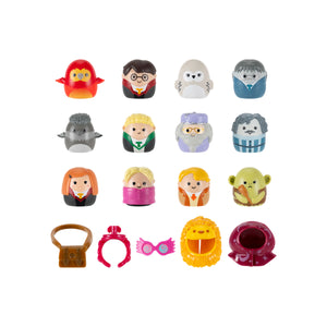 Cast a spell on your Squad with “Harry Potter” Squish-a-longs! This Squish-a-longs multipack includes 12 “Harry Potter” Mini-Squish—Harry Potter, Hedwig, Moaning Myrtle, Buckbeak, Draco Malfoy, Albus Dumbledore, Fawkes, Nearly Headless Nick, Ginny Weasley, Luna Lovegood, Gilderoy Lockhart, and Mountain Troll—in addition to Invisibility Cloak, Lion Head, School Bag, and Spectrespecs accessories for Mini-Squish styling. Play or display your “Harry Potter” Squish-a-longs at home, or attach your Mini-Squish to the included ring accessory to take the magic on the go! Only by Original Squishmallows and officially licensed by Warner Bros. Discovery. Join the Squad today!