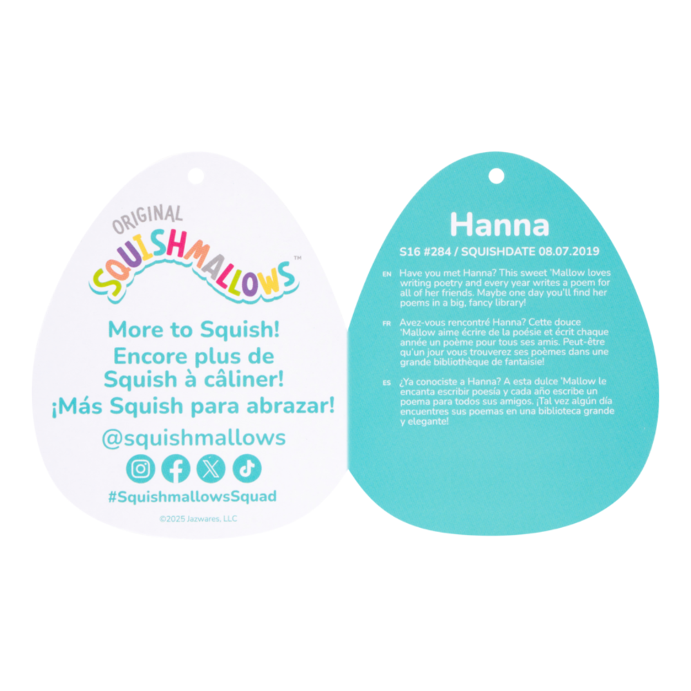 Add the Hanna the Purple Hippo plush to your Squishmallow Squad! This 50cm tall soft toy is made of the softest plush material, making her extra squeezable and huggable. Whether you are an avid collector, or just looking for a new cuddly friend, Squishmallows high-quality, adorable characters are perfect for everyone. Each Original Squishmallow comes with their own unique name and story, join the squad today!